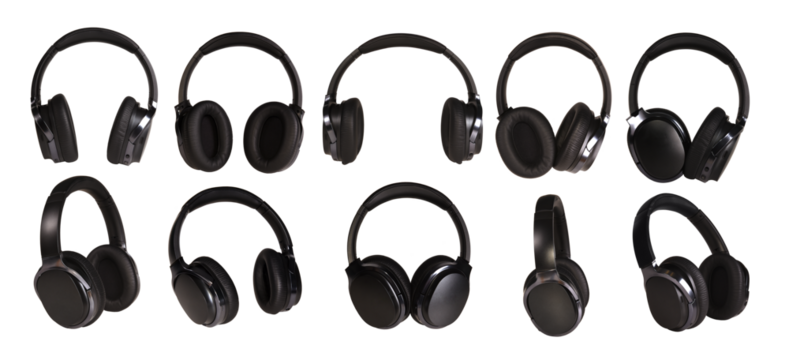 Two High-Quality Over-Ear Headphones isolated on transparent and white background