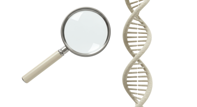 Isolated Magnifying Glass Examining DNA Helix Structure