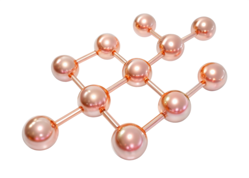 Close up of a colorful molecular structure with metallic connectors isolated on transparent background
