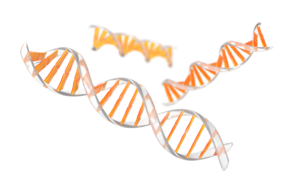 Various 3D models of DNA strands in multiple colors, cut out transparent