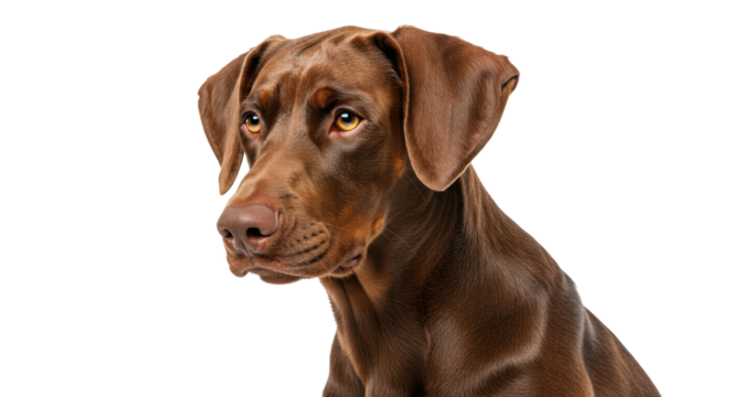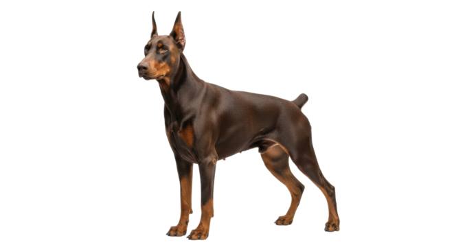 Elegant brown Doberman Pinscher dog isolated, portrait of purebred canine companion on a clean backdrop for pet-related designs