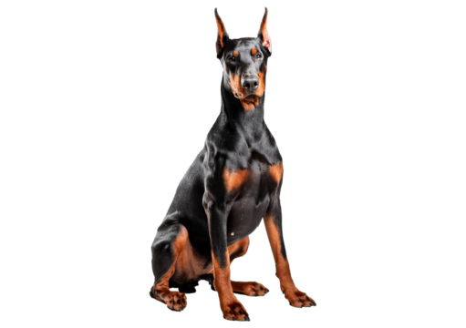 Doberman Pinscher sitting isolated on a transparent or white background