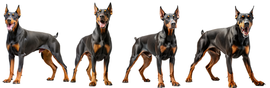 Set of cute doberman dogs isolated on transparent background PNG