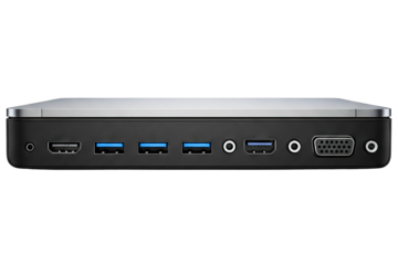 Modern laptop docking station with USB and video display ports isolated on a transparent background
