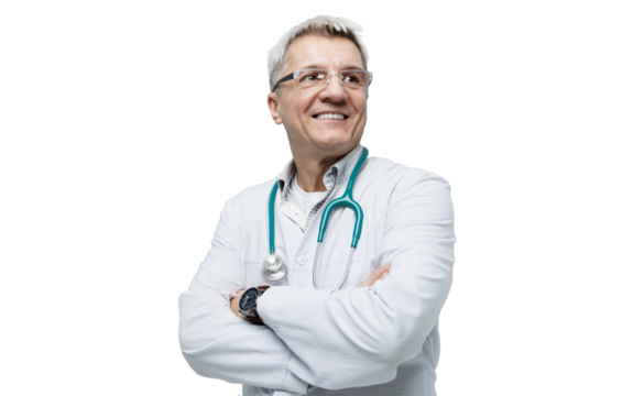 Transparent background doctor with stethoscope and lab coat