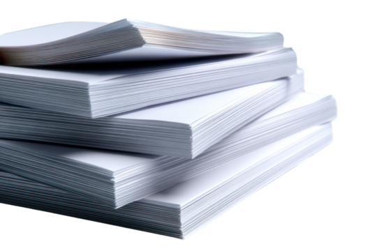 Open blank book with white pages and colorful edge detail on a transparent background studio shot with soft light