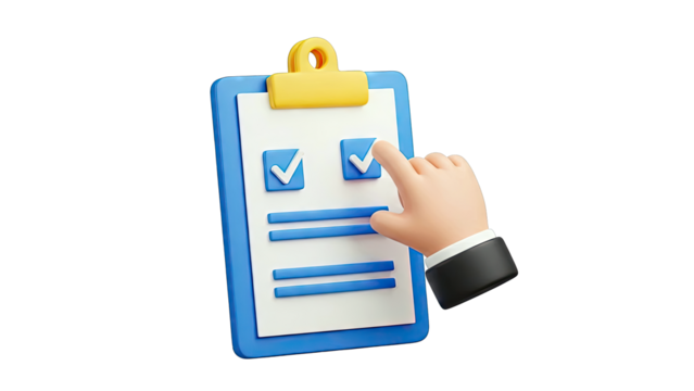 3D Clipboard with Checkmarks and Hand Tapping