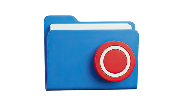 3D Blue Folder Icon with Red and White Circle
