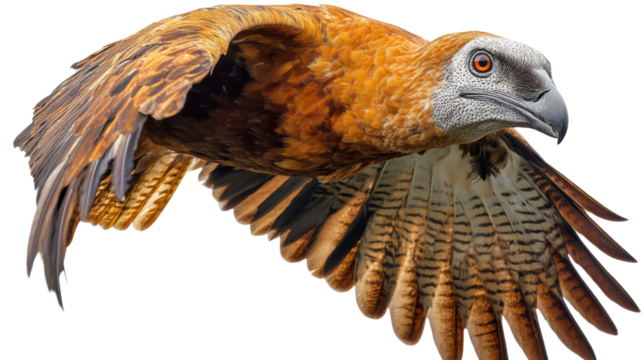 Detailed 3 D render of a grey dodo bird with textured feathers and orange eyes, isolated on a white or transparent background, cutout, PNG