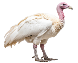 Full-body side-view photograph of an oiled, white dodo bird isolated on a trasparent background