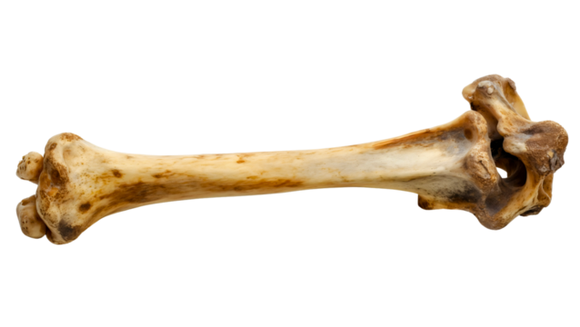 Bone isolated on transparent background. Raw uncooked object, medical human skeleton anatomy, joint, body, piece, dog