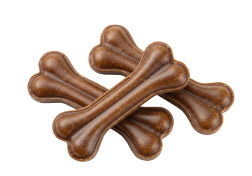 Isolated heap of brown dog bones treats for puppies chewing and teeth cleaning, fun food