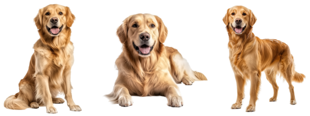 Full body set of Golden Retriever dog in sitting, lying down and standing, isolate on transparent background