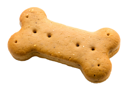 A brown dog biscuit bone, isolated on a white background, is a healthy and edible treat for your canine pet