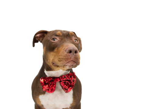 Mixed breed Staffordshire dog celebrating valentine's day, birthday or christmas. Isolated on white background
