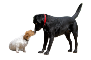 Picture of 2 dogs on a white background which represent the concept of cohabitation and friendship between 2 different beings.