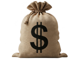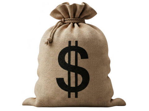 Burlap sack with dollar sign symbolizes wealth, success, and prosperity
