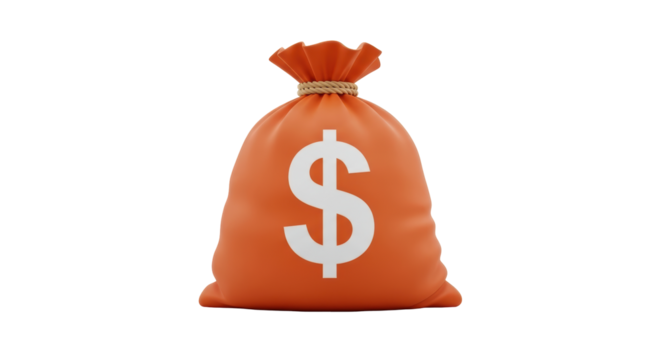 Isolated orange money bag with dollar sign, tied with rope, conceptual finance graphic