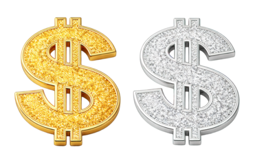 Golden dollar sign on transparent background
