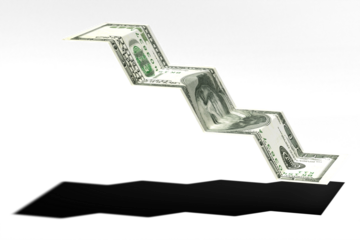 A 100 dollar bill being folded like a graph bar - concept for inflation or price hikes or devaluation of the dollar - sharp shadow, illustration style. Transparent background