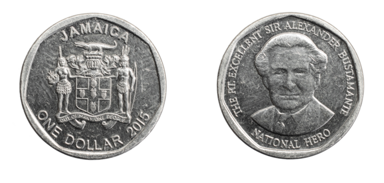 Jamaica one dollar coin on a white isolated background
