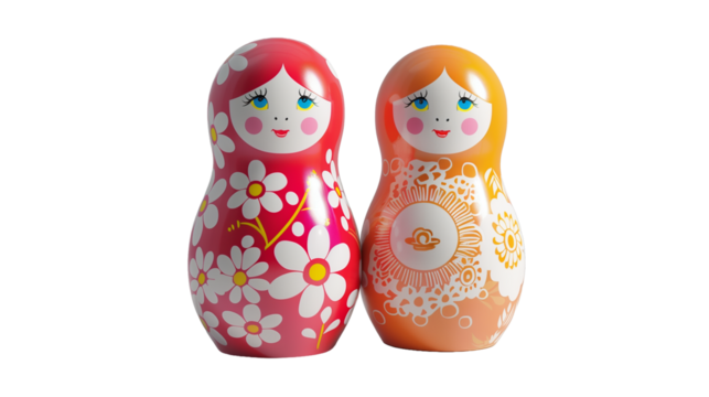Set of traditional Russian matryoshka nesting dolls with floral patterns