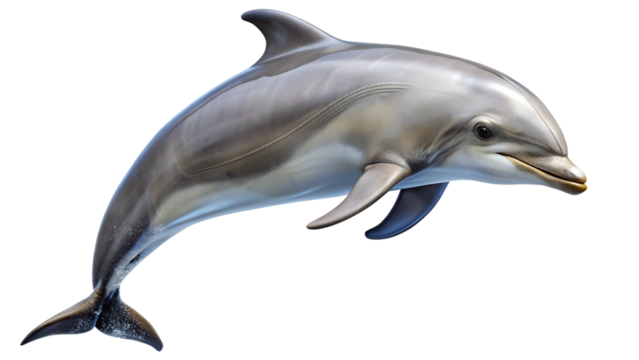 Realistic dolphin swimming gracefully, marine life, transparent background