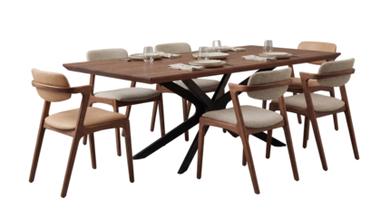 Modern Dining Table With Upholstered Chairs Set For Meal On Transparent Background