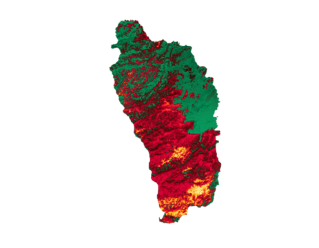 Dominica map with the flag Colors Red and Green Shaded relief map 3d illustration