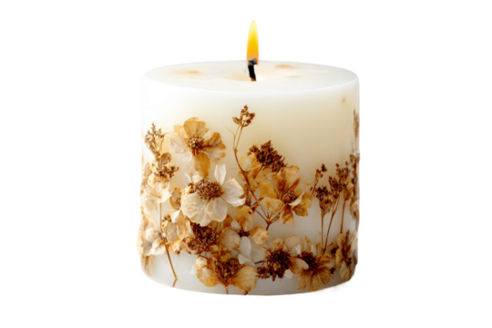 Handcrafted scented candle with dried flower details isolated on transparent background