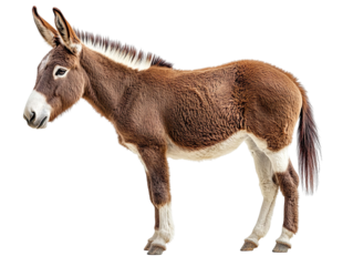 Brown and white donkey isolated on transparent background