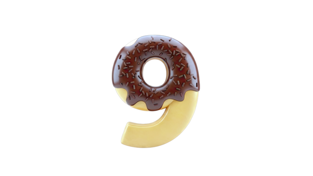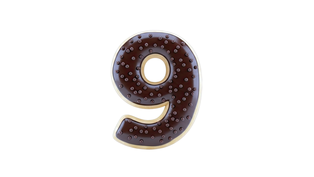 A series of doughnut-shaped numbers in the frosting, ranging from 0 to 9 on a transparent background