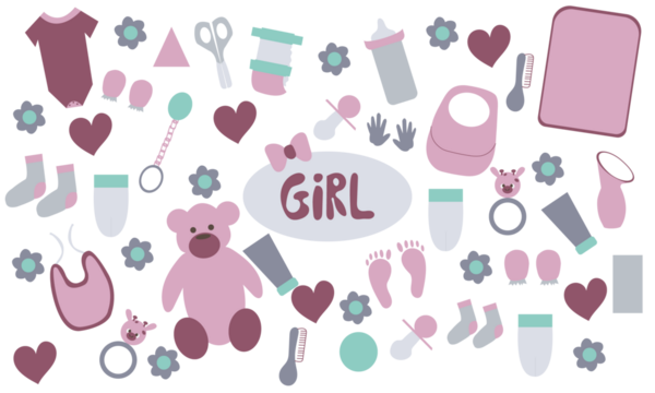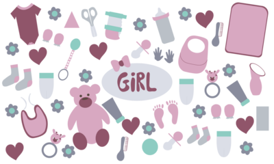 Baby flat doodle set hand drawn. Stock PNG illustration for design elements, textile prints, cover, logo