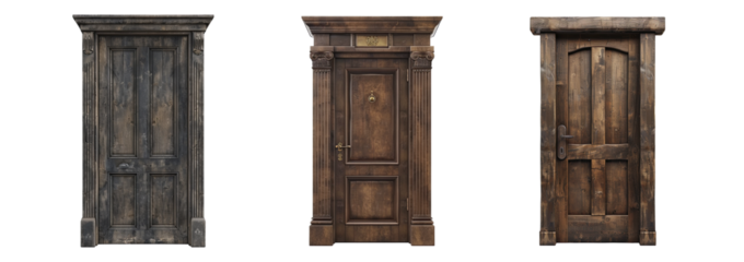 Vintage old door set on transparent background.