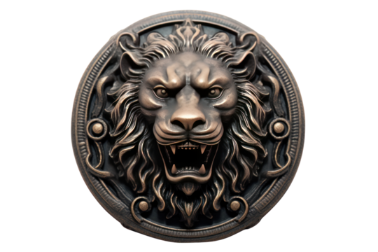 Ornate antique doorknob with a detailed lion's head design. Isolated on white background.