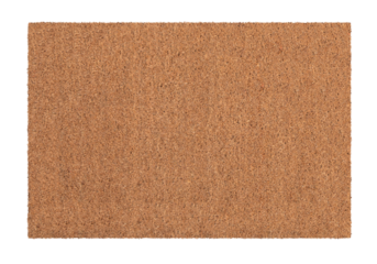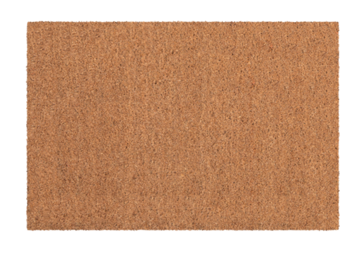 Close up of a textured brown rectangular doormat isolated on transparent background