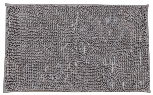 Grey soft bath mat with a long microfiber pile isolated on a transparent background. Top view.