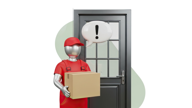 Delivery Person with Package and Exclamation Mark Speech Bubble