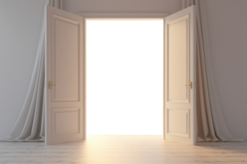 Multiple white open doors on transparent background