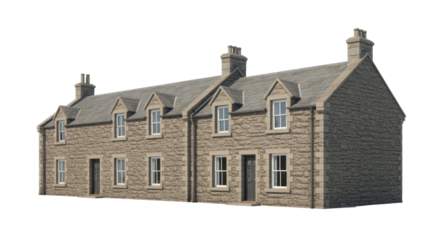 Stone row houses with dormer windows