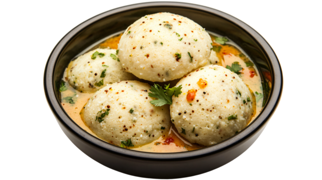 Ghee roast Dosa and Idlii with Chutney, south indian main breakfast isolated on transparent background