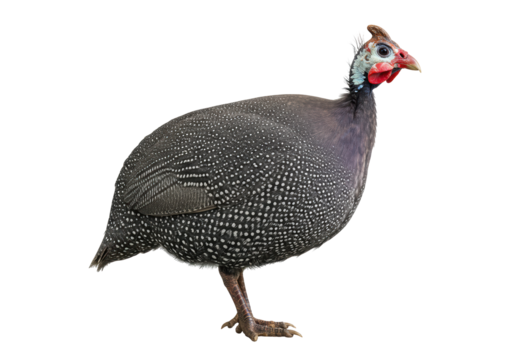 Isolated Guinea fowl with unique plumage, bird of the poultry family, domesticated animal