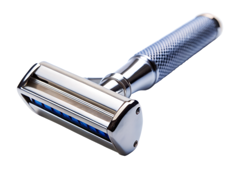 Elegant chrome double edge safety razor for men's grooming, Isolated On Transparent Background, Png Cut Out