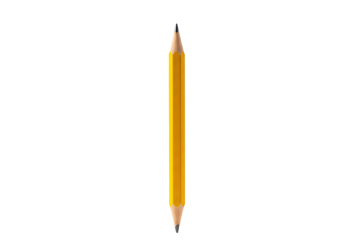 Isolated double-ended yellow pencil with sharpened points for writing, drawing, drafting art
