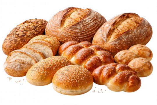 Golden brown sweet bread rolls with sesame seeds isolated on transparent background. Sesame bun bread isolated on white background.