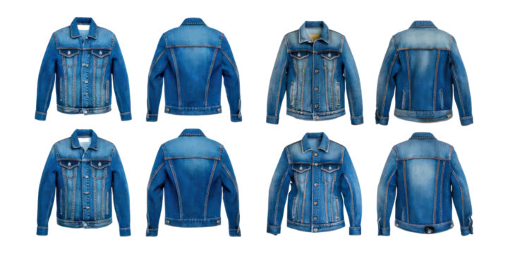 Vintage and modern jackets displayed in, isolated on transparent background, png set