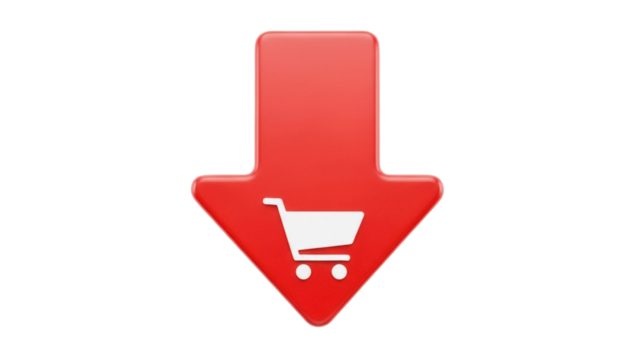 Arrow down UI glossy minimal 3D icon for interface navigation controls isolated on white background