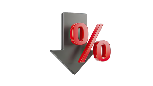 3D Bar Chart Showing Decline with Red Arrow and Dollar Sign on transparent background