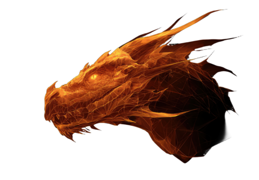 Fiery dragon head with glowing eyes, composed of orange and yellow energy on black