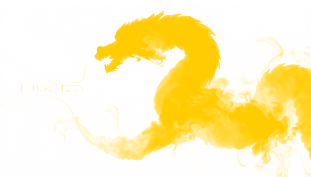 PNG of yellow smoke forming a dragon silhouette in flowing motion, ideal for fantasy designs, creative projects, digital art, visual effects, and overlays with transparent background